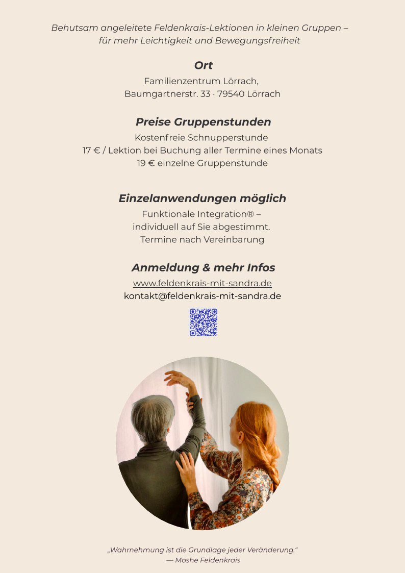 Anmeldung und Nachfragen dirket an Sandra Haubold: kontakt@feldenkrais-mit-sandra.de