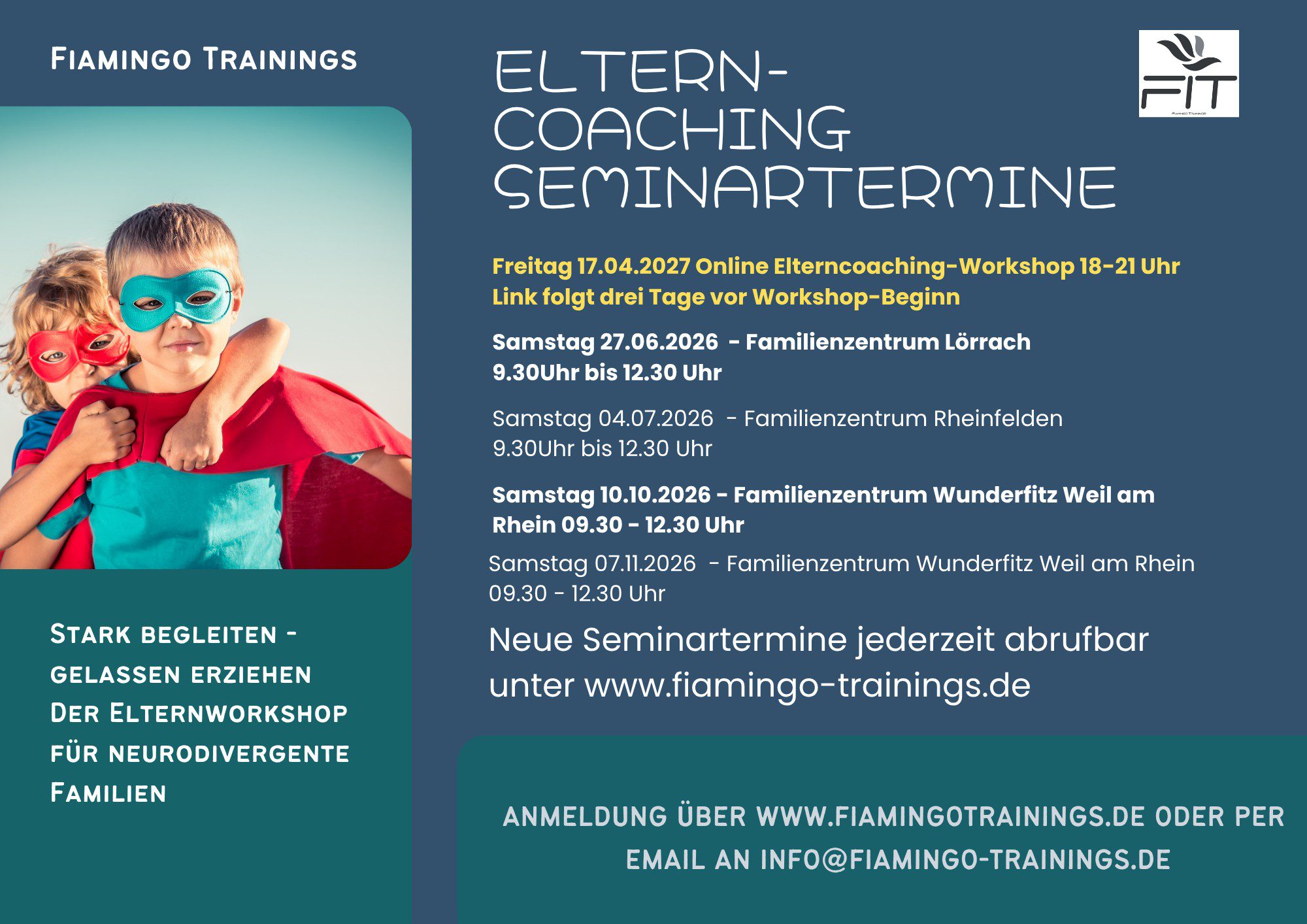 Anmeldungen bitte direkt an Frau Fiamingo unter info@fiamingo-trainings.de